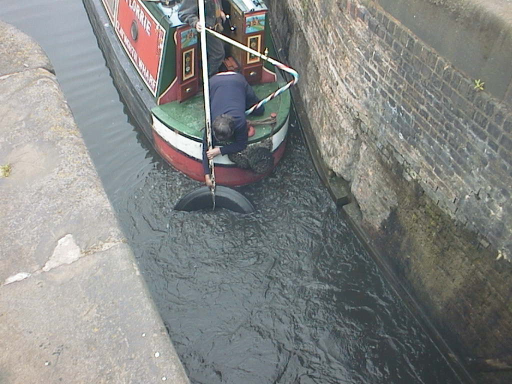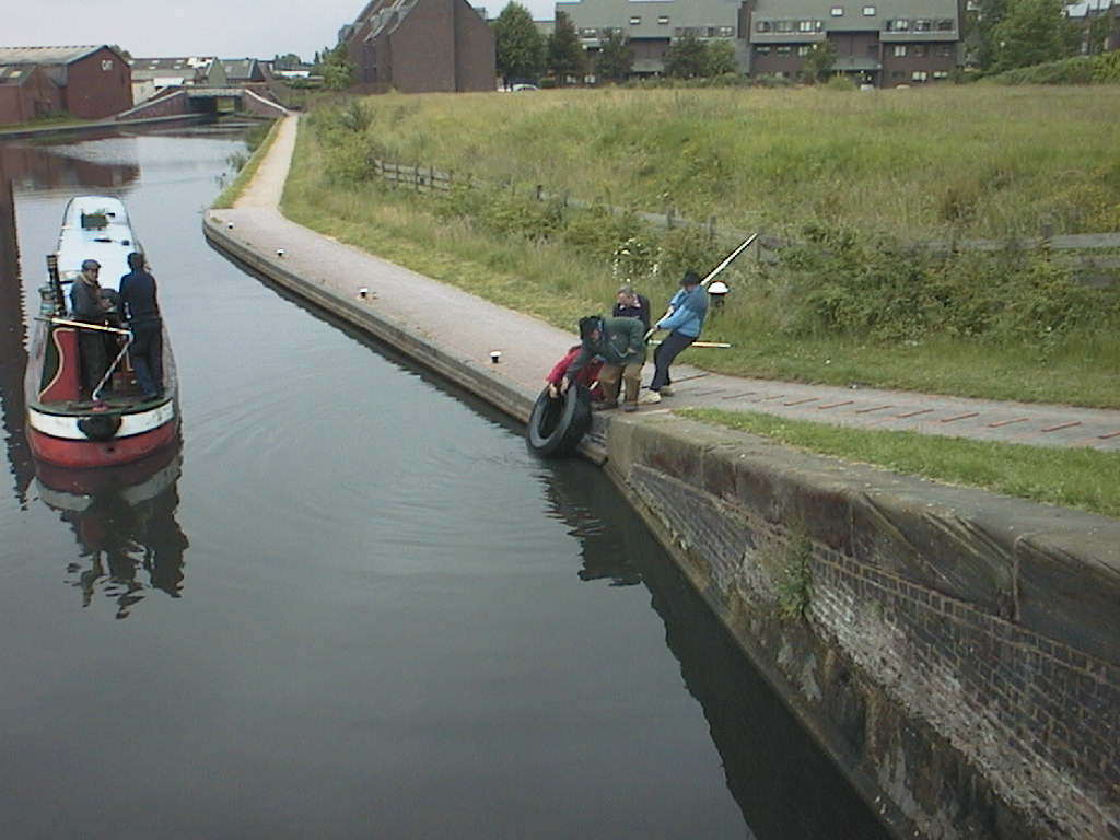 Mike Stevens, Jan and two other boaters haul out the tyre!